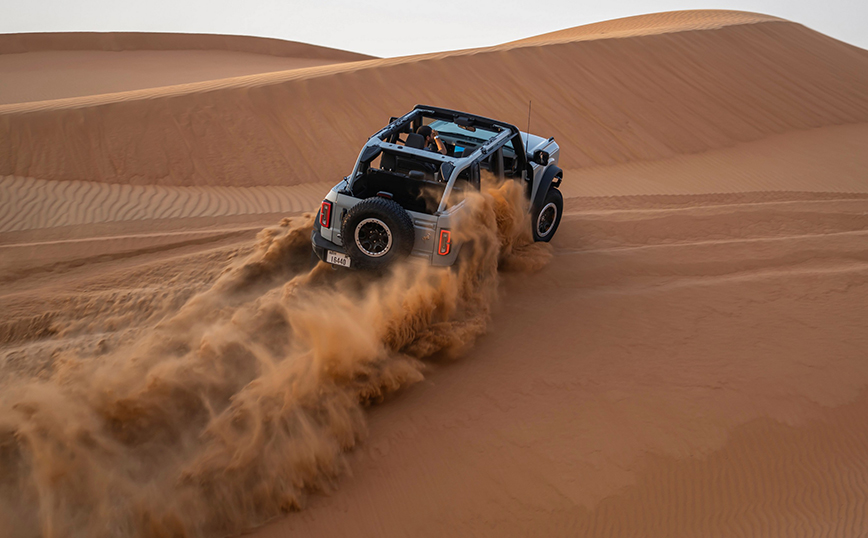 Το Bronco Badlands προσθέτει διαφορικό περιορισμένης ολίσθησης για τον εμπρός άξονα, καθώς και σύστημα αποσύνδεσης της εμπρός αντιστρεπτικής δοκού, εξασφαλίζοντας μέγιστη άρθρωση στην ανάρτηση σε απαιτητικές συνθήκες. Επιπλέον, ένα ηλεκτρομηχανικό κιβώτιο μεταφοράς δύο ταχυτήτων με αυτόματη λειτουργία επιτρέπει την απρόσκοπτη εναλλαγή μεταξύ 2WD και 4WD, ανάλογα με τις συνθήκες, αφήνοντας τον οδηγό απερίσπαστο προκειμένου να συγκεντρωθεί στο δρόμο.