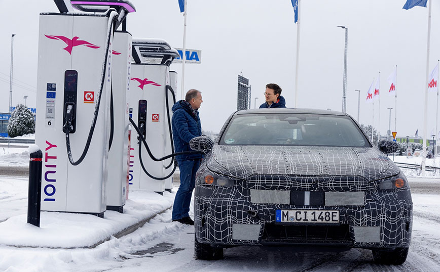 Τα καινοτόμα συστήματα ελέγχου του συστήματος μετάδοσης κίνησης και του πλαισίου της BMW i5 συμβάλλουν σημαντικά στη βελτιστοποίηση της πρόσφυσης, του δυναμισμού και της οδηγικής ευστάθειας, και αυτό επιβεβαιώνεται με τον καλύτερο τρόπο πάνω σε ένα συμπαγές στρώμα χιονιού, σε παγωμένους ορεινούς δρόμους και παγωμένες λίμνες. Οι δυναμικές χειμερινές δοκιμές του αμιγώς ηλεκτροκίνητου sedan ολοκληρώθηκαν πρόσφατα ακριβώς εκεί όπου ξεκίνησαν: στο τσουχτερό κρύο του κέντρου χειμερινών δοκιμών του BMW Group στο Arjeplog της βόρειας Σουηδίας.