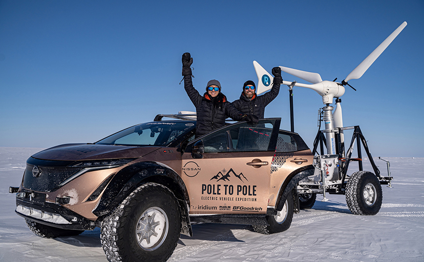 Περιτριγυρισμένοι από τον τεράστιο Αρκτικό Ωκεανό που καλύπτεται από πάγο, οι εξερευνητές Chris και Julie Ramsey ξεκίνησαν την πολυαναμενόμενη αποστολή τους Pole to Pole. Μετά από ενδελεχή έλεγχο ασφαλείας, η ομάδα ξεκίνησε από το σημείο 1823*στο Βόρειο Μαγνητικό Πόλο. Ο Ramsey και η ομάδα του θα διανύσουν με ένα Nissan Ariya e-4ORCE πάνω από 27.000 χιλιόμετρα σε διάφορες περιοχές και ηπείρους, με θερμοκρασίες που κυμαίνονται από -30⁰C έως 30⁰C. Ο Ramsey θα είναι ο πρώτος που θα οδηγήσει μεταξύ των δύο πόλων της Γης με όχημα οποιουδήποτε τύπου, καθώς θα πραγματοποιήσει το δρομολόγιό του από την Αρκτική μέσω της Βόρειας, Κεντρικής και Νότιας Αμερικής, πριν περάσει στο πιο απομακρυσμένο μέρος του κόσμου, τον Νότιο Πόλο της Ανταρκτικής, τον Δεκέμβριο.