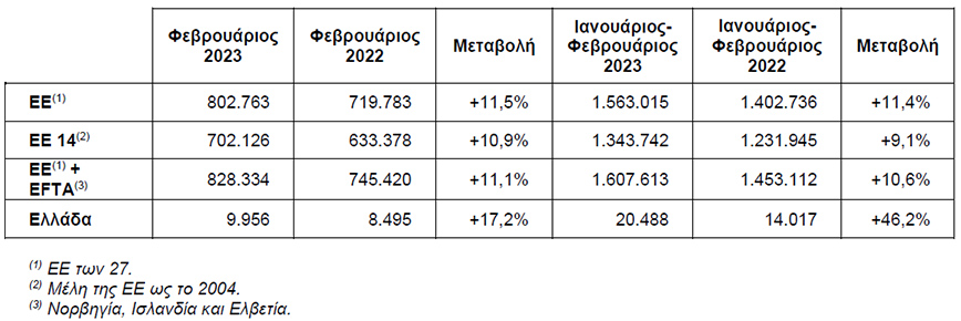 Τέλος, σε επίπεδο ΕΕ, η αγορά σημειώνει διψήφια αύξηση, τουλάχιστον για τους δυο πρώτους μήνες του 2023.