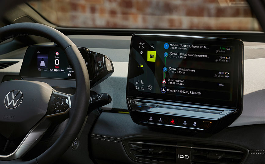 Το ανανεωμένο ID.3 είναι εξοπλισμένο με την τελευταία γενιά λογισμικού που βελτιώνει την απόδοση του συστήματος και μπορεί να λαμβάνει ενημερώσεις over-the-air. Επιπλέον, το βασικό πακέτο εξοπλισμού αναβαθμίζεται και πλέον περιλαμβάνει μια οθόνη infotainment με διαγώνιο 12 ίντσες (30,5 εκατοστά), θερμαινόμενα καθίσματα εμπρός, αναδιπλούμενες καθρέπτες και πολλά ακόμα στοιχεία. Λειτουργίες όπως το Plug & Charge και ο έξυπνος Προγραμματιστής Διαδρομών Ηλεκτρικού Οχήματος καθιστούν την εμπειρία φόρτισης στο νέο ID.3 ακόμα πιο απλή και εύκολη.