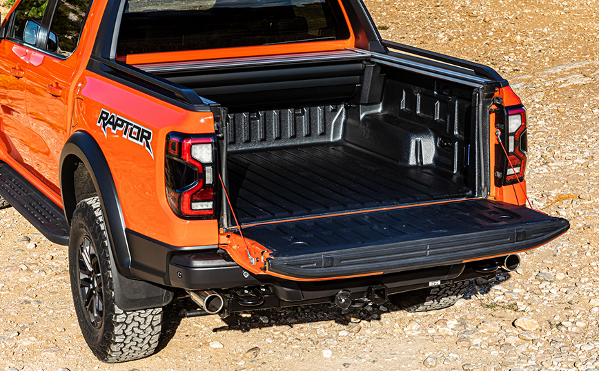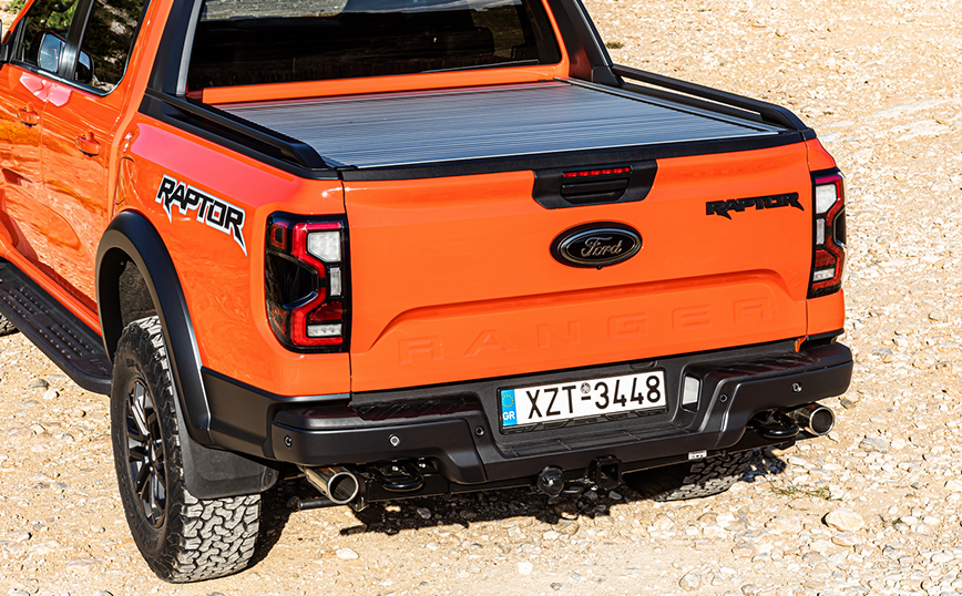 Το νέο Raptor, που είχαμε την ευκαιρία να γνωρίσουμε και να οδηγήσουμε επί ελληνικού εδάφους, στην περιοχή της Αττικής, σε άσφαλτο και σε χώμα, με επιφάνειες πετρώδεις που θύμιζαν ειδικές παλιών Ράλλυ Ακρόπολις, είναι το μοντέλο 2ης γενιάς, ένα πολυχρηστικό εργαλείο, όπως ήδη από τον τίτλο επισημάναμε. Με μήκος 5,38 μ., ωφέλιμο φορτίο 575 κιλά, ικανότητα έλξης 2.410 κιλών, απόσταση από το έδαφος 272 χλστ, γωνίες προσέγγισης, αναχώρησης, ράμπας: 31⁰, 27⁰ και 24⁰, αντίστοιχα, και βάθος διέλευσης υδάτινου εμποδίου στα 850 χλστ, το νέο τεχνούργημα της Ford εντυπωσιάζει με την ποιότητα κατασκευής, τα δυναμικά χαρακτηριστικά του (ισχύς κινητήρα, οδική συμπεριφορά σε οριακές καταστάσεις), τις ικανότητές του εντός και εκτός δρόμου, αλλά, κυρίως, γιατί είναι ένα pick-up με σπορ προδιαγραφές και ανέσεις λιμουζίνας, που περνά με εντυπωσιακή άνεση από παντού. Επιπλέον και συγχρόνως, είναι πρακτικό, ιδίως το διπλοκάμπινο (διατίθεται και σε μονοκάμπινο και ημικάμπινο), με roll top για την προστασία της καρότσας, ηλεκτρικά ανοιγόμενο ως έξτρα εξοπλισμός, με μήκος 1,54 μ., πλάτος στους θόλους 1,22 μ. και ύψος 0,53 μ..