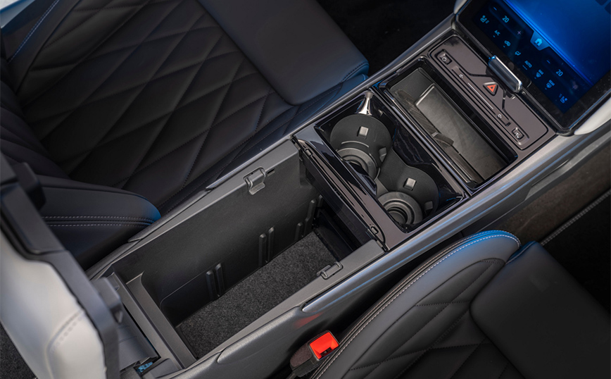 Η κονσόλα με την ονομασία Mega Console και χωρητικότητα 17 λίτρα που βρίσκεται σε έναν ειδικά διαμορφωμένο χώρα ανάμεσα σε οδηγό και συνοδηγό έρχεται να ενισχύσει την ευκολία χρήσης και στην πρακτικότητα τόσο στην καθημερινότητα, όσο και στα ταξίδια και μπορεί να χωρέσει ακόμα και έναν φορητό υπολογιστή (laptop) 15 ιντσών. Το εσωτερικό του νέου Explorer έχει επίσης ένα κρυφό ντουλαπάκι που βρίσκεται πίσω από την κεντρική οθόνη αφής 15 ιντσών. Σε αυτόν τον ασφαλή χώροι οι επιβάτες του νέου Explorer μπορούν να τοποθετήσουν διάφορα προσωπικά τους αντικείμενα – από κλειδιά και μεσαίου μεγέθους πορτοφόλια έως και μια φωτογραφική μηχανή.