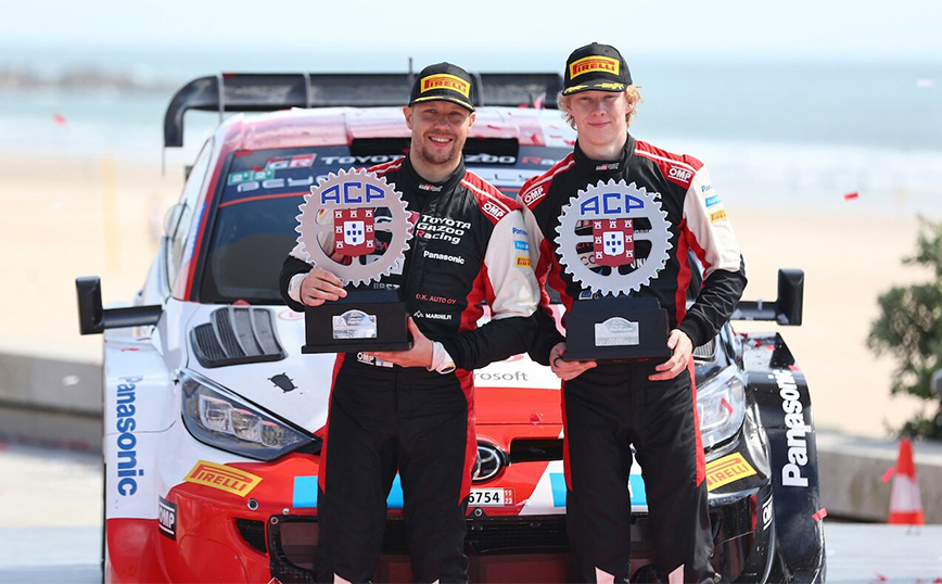 Συγκεκριμένα οι Φιλανδοί περσινοί παγκόσμιοι πρωταθλητές Ροβάνπερα – Χάλτουνεν οδήγησαν το Toyota Yaris Rally1 στο δρόμο για μια απόλυτα πειστική νίκη στις χωμάτινες ειδικές διαδρομές της Πορτογαλίας, κερδίζοντας 10 (από τις 19 συνολικά), μαζί και την power stage που δίνει τους επιπλέον βαθμούς.