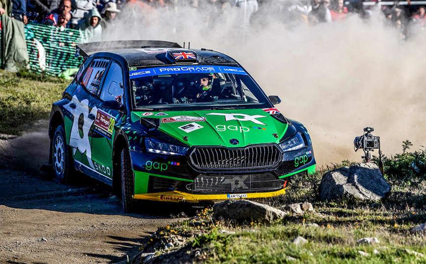 Μάλιστα στην Πορτογαλία η κατηγορία WRC2 ήταν αυτή που κράτησε αμείωτο το ενδιαφέρον μέχρι το τέλος, καθώς η μάχη για την πρώτη θέση κρίθηκε για μόλις 1,2 δευτερόλεπτα. Τελικοί νικητές οι Γκρίνσμιθ – Άντερσον με Skoda Fabia RS, που επικράτησαν των ηθικών νικητών Όλιβερ Σόλμπεργκ – Έντμονσον με ίδιο αυτοκίνητο. Οι τελευταίοι ήταν από την αρχή άνετα εμπρός στην κατηγορία, αλλά η επίδειξη δεξιοτεχνίας (τα γνωστά και σαν «ντόνατς») του οδηγού στην 15η ειδική επέφεραν ποινή 1 λεπτού από τους υπερβολικά αυστηρούς κριτές, με αποτέλεσμα τη νίκη του Γκρίνσμιθ παρά το ότι ο Σουηδός προσπάθησε και σχεδόν κάλυψε την πλασματική διαφορά μέσα σε 4 ειδικές. Η επίδοση αυτή του γιού του παγκόσμιου πρωταθλητή του 2003 Πήτερ Σόλμπεργκ, δικαιώνει όσους τον πιστεύουν και χορηγούν και επιτρέπει στον ίδιο να ελπίζει στην επιστροφή του στην κορυφαία κατηγορία.