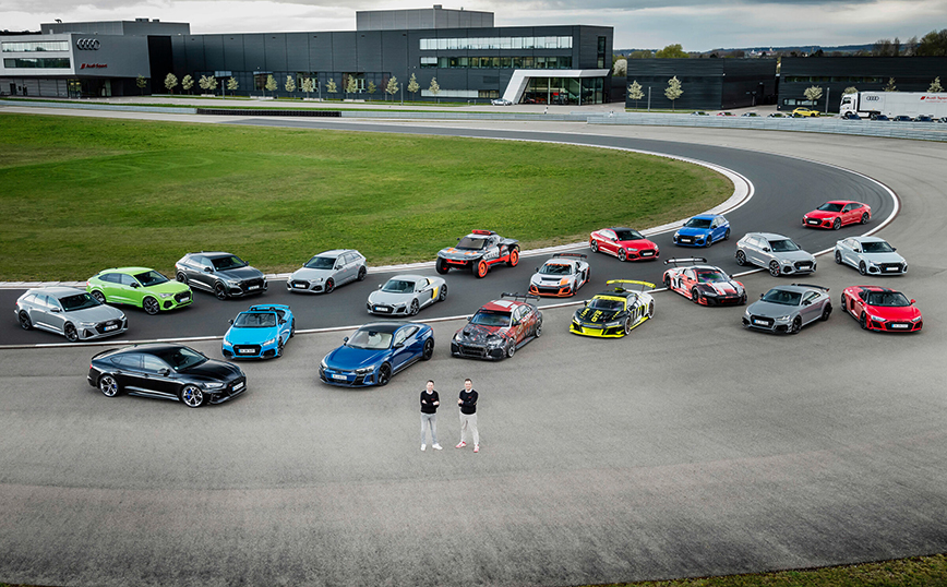 Η Audi Sport GmbH αυτή τη στιγμή απασχολεί περίπου 1.500 άτομα. Το 2022, η εταιρία σημείωσε και πάλι ρεκόρ πωλήσεων με 45.515 αυτοκίνητα. Με 16 μοντέλα, το χαρτοφυλάκιο οχημάτων είναι μεγαλύτερο από ποτέ, από το compact Audi RS 3 Sportback και το SUV υψηλών επιδόσεων RS Q8 μέχρι το σούπερ σπορ αυτοκίνητο R8 Coupé και το κορυφαίο ηλεκτρικό μοντέλο, το RS e-tron GT. Επίσης, πέρυσι, 10.042, ή περίπου το ένα τέταρτο των οχημάτων που παραδόθηκαν από την Audi Sport, ήταν ήδη μοντέλα της οικογένειας e-tron GT, με περίπου ένα στα τρία από αυτά να είναι μοντέλο RS.