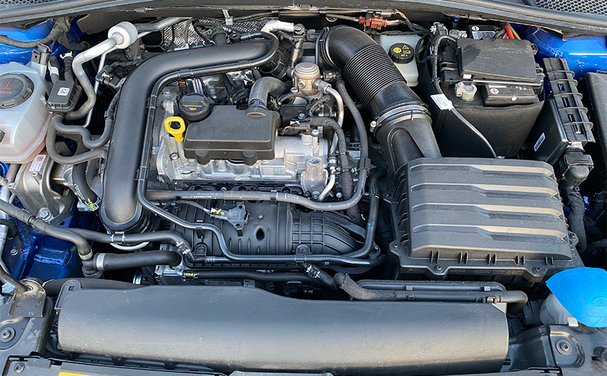 Επίσης, οι τροχοί της έκδοσης με το DSG7 ήταν μικρότερης διαμέτρου (195/55/16 αντί 215/45/17) με αποτέλεσμα το προφίλ των ελαστικών να είναι μεγαλύτερο, γεγονός που ταιριάζει περισσότερο στους κακοτράχαλους ελληνικούς δρόμους, προς όφελος της άνεσης και της ποιότητας κύλισης. Εδώ να σημειώσουμε και τη σχεδίαση των ζαντών που δεν διεκδικούν βραβείο καλαισθησίας, αλλά στοχεύουν στην βελτίωση της αεροδυναμικής, σε συνδυασμό με τους καθρέπτες, τις ενεργά ρυθμιζόμενες περσίδες ψύξης στο κάτω μέρος του εμπρός προφυλακτήρα, τη μεγαλύτερη πίσω αεροτομή και τα δώδεκα πάνελ στο πάτωμα του αμαξώματος. Αποτέλεσμα, συντελεστής Cd: 0,28 επίδοση ρεκόρ για την κατηγορία, με την εταιρία να υποστηρίζει πως το κέρδος (σε σχέση με την προηγούμενη γενιά) είναι 0,2 λτ καυσίμου ανά 100 χλμ. και ευτυχώς που είναι έτσι…