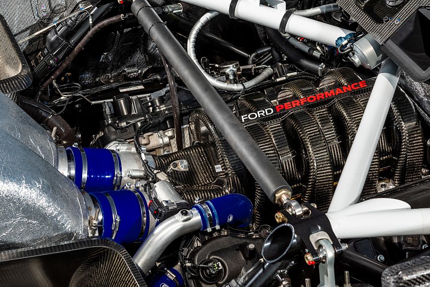 συναρμολογεί τους κινητήρες V8 Coyote των 5,4 λίτρων που αναπτύχθηκαν από την Ford Performance και τροφοδοτούν αυτό το ισχυρό αγωνιστικό της μάρκας.
