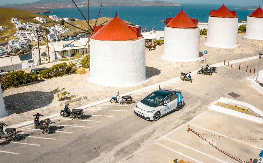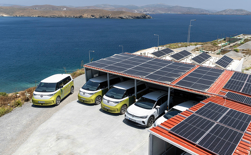 Οι αλλαγές στον στόλο των αυτοκινήτων του νησιού ξεκίνησαν με τα περιπολικά της ΕΛΑΣ, του Λιμενικού Σώματος, της Δημοτικής αρχής και των οχημάτων του αεροδρομίου. Ακολούθησαν ένας στόλος από ηλεκτρικά ποδήλατα (Ducati) και ηλεκτρικά δίκυκλα (Seat MÓ eScooter 125), αλλά και τα πρώτα ιδιωτικά οχήματα (VW e-up!, ID.3 και ID.4). Υπάρχουν 2 ρarking zones για τα ηλεκτρικά ποδήλατα και τα σκούτερ, το ένα στο λιμάνι και το άλλο στην Χώρα. Επίσης, πέντε ID. Buzz ανέλαβαν το ρόλο της αστικής κατά παραγγελίας μετακίνησης (με λογική χρέωση) διαθέσιμα καθ’ όλη τη διάρκεια του έτους. Αξίζει να σημειώσουμε πως, το ασθενοφόρο του άρτια εξοπλισμένου σε ανθρώπινη και υλικοτεχνική υποδομή Κέντρου Υγείας του νησιού είναι ηλεκτρικό, ενώ αναμένεται και ένα ακόμα ασθενοφόρο (ένα e-Crafter διαμορφωμένο από ελληνική εταιρία).