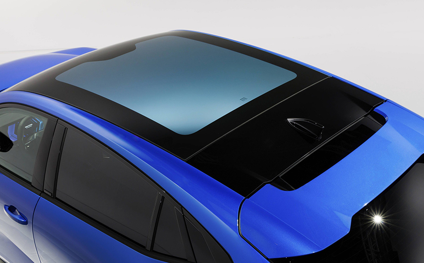 Η πρωτοποριακή, εντυπωσιακή πανοραμική γυάλινη οροφή Solarbay διαστάσεων 1.470 Χ 1.117χλστ εξελίχθηκε από την Saint-Gobain, ενώ το Rafale είναι το πρώτο αυτοκίνητο που τη χρησιμοποιεί. Η τεχνολογία Ampli Sky αντικαθιστά τις κλασσικές γυάλινες επιφάνειες με ένα πλήρως ενεργό σύστημα που σκουραίνει κάθε τμήμα του ξεχωριστά, χρησιμοποιώντας ηλεκτρικά πεδία. Έτσι, παρέχει, σε δευτερόλεπτα, μέγιστη προστασία από τον ήλιο, ενώ το θέαμα της διαδοχικής εναλλαγής των εννέα τμημάτων ολόκληρης της γυάλινης επιφάνειας, σε σκούρο χρώμα, είναι εντυπωσιακό. Αυτή η έξυπνη γυάλινη οροφή μπορεί να ελέγχεται και φωνητικά μέσω του Google Assistant, ενώ λειτουργεί και με ένα διακόπτη στο φωτιστικό της οροφής.