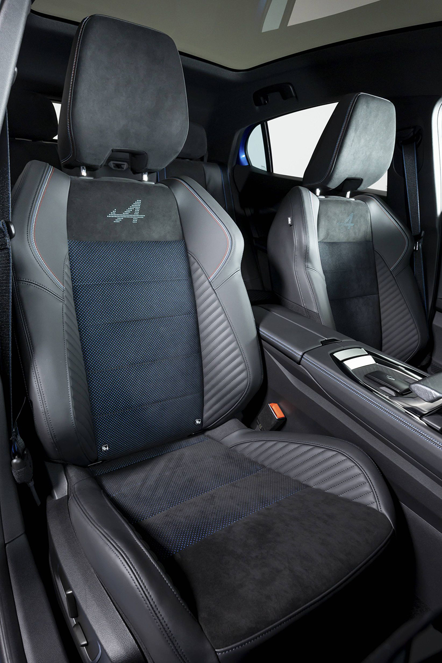 Τα καθίσματα του Rafale διαθέτουν ενισχυμένα πλαϊνά για να ταιριάζουν με τη δυναμική συμπεριφορά του αυτοκινήτου, εξασφαλίζοντας υψηλό επίπεδο πλευρικής στήριξης. Η επένδυση Alcantara βοηθά στη διατήρηση του οδηγού σε όρθια θέση, προσθέτει στη σπορ αίσθηση και είναι φιλική προς το περιβάλλον (είναι η πρώτη φορά που χρησιμοποιείται ανακυκλωμένο κατά 61%, υλικό Alcantara). Επιπλέον, το λογότυπο A με το βέλος στο επάνω μέρος της πλάτης του καθίσματος, κυριολεκτικά ανάβει και αναβοσβήνει στο ρυθμό μίας ανθρώπινης καρδιάς.