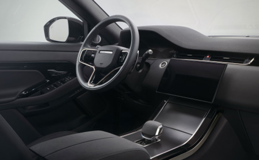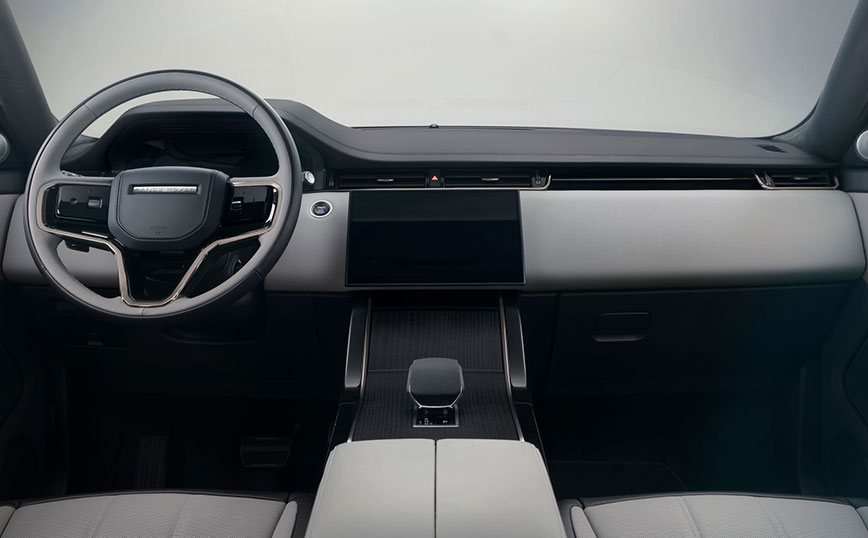 Στο εσωτερικό, η σχεδιαστική φιλοσοφία του Range Rover ενισχύεται με μια νέα κυρτή γυάλινη οθόνη αφής 11,4 ιντσών, η οποία φαίνεται να αιωρείται στο οπτικό πεδίο του οδηγού εξασφαλίζοντας βελτιωμένη ορατότητα, ενώ απελευθερώνει χώρο για την αποθήκευση αντικειμένων και ασύρματη φόρτιση συσκευών. Με την υποστήριξη του PiviPro2, τακτικές ασύρματες ενημερώσεις λογισμικού (Software Over The Air) και ενσωματωμένο Amazon Alexa10, η νέα κεντρική κονσόλα προσφέρει στους πελάτες μια νέα, εύχρηστη ψηφιακή εμπειρία.