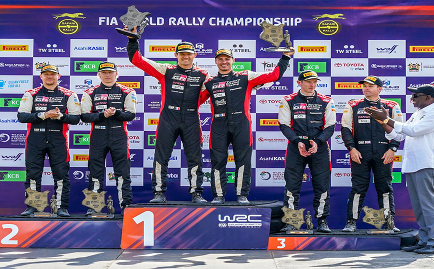 Ο 7ος γύρος του Παγκόσμιου Πρωταθλήματος Ράλι (WRC), το Ράλι Σαφάρι στην καταπράσινη – αυτή την εποχή – Κένυα, ολοκληρώθηκε χθες με θρίαμβο της ομάδας Toyota που έκανε το 1-2-3-4 στην γενική κατάταξη, και των Οζιέ – Λαντέ που ουσιαστικά δεν είχαν αντίπαλο, οδηγώντας επί τρεις ημέρες το GR Yaris Rally1 Hybrid στην πρώτη θέση της γενικής κατάταξης.