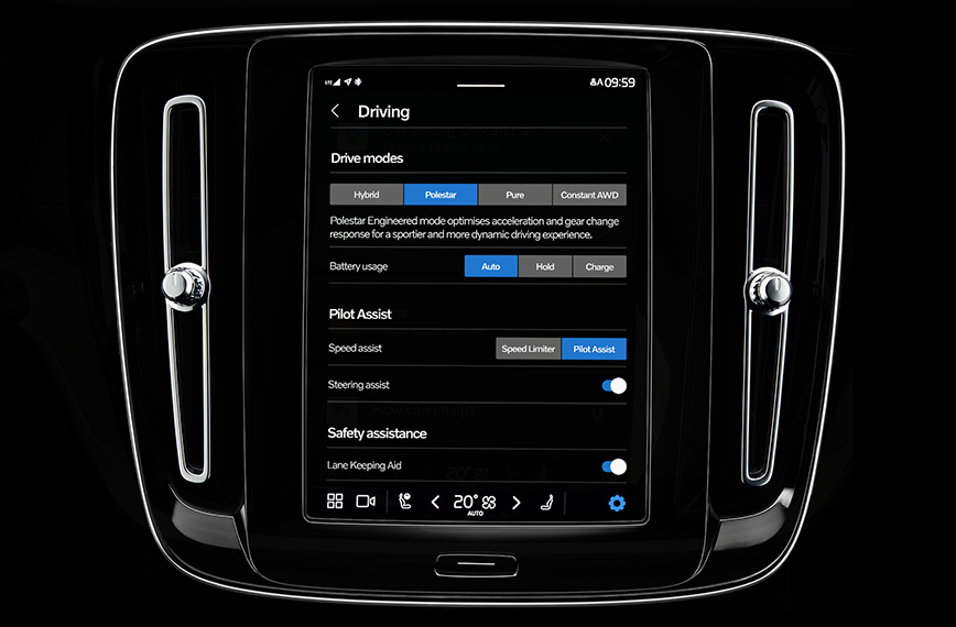 Το XC60 Recharge T8 αποτελεί ξεχωριστή πρόταση χάρη και στις επιδόσεις του, επιταχύνοντας από 0-100 χλμ/ώρα σε μόλις 4,9 δευτερόλεπτα. Με το λογισμικό αναβάθμισης Polestar Engineered Optimisation, προσφέρει στον οδηγό μία ακόμη πιο συναρπαστική αίσθηση. Ο μειωμένος χρόνος απόκρισης του κινητήρα στο πάτημα του γκαζιού παρέχει αυξημένο, πιο διαισθητικό έλεγχο των αντιδράσεων του αυτοκινήτου. Το ίδιο ισχύει και για τον χρόνο που μεσολαβεί κατά την αλλαγή σχέσεων. Το άμεσο και χωρίς δισταγμό πέρασμα στην επόμενη σχέση επιτρέπει στον οδηγό να αξιοποιεί στο έπακρο τη δύναμη του μοντέλου, χωρίς την παραμικρή υστέρηση.