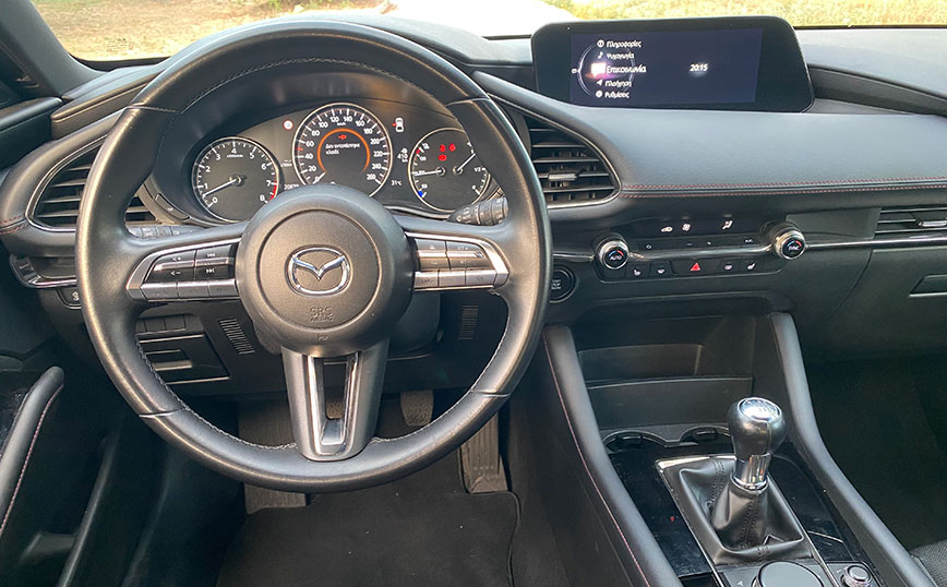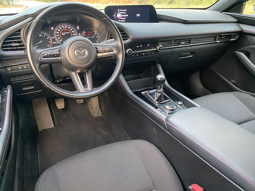 Ταυτόχρονα, δεν επιτρέπει έντονες κλίσεις του αμαξώματος στις στροφές ή το απότομο φρενάρισμα, ενώ για τις οριακές καταστάσεις φροντίζει το G-Vectoring Control Plus που επεμβαίνει διακριτικά στα φρένα και στον κινητήρα, αν και σπάνια χρειάζεται. Το Mazda3 στρίβει χωρίς πρόβλημα ή αλλοίωση τροχιάς, δεν σπινάρει, δεν διώχνει το πίσω μέρος και σχεδόν ποτέ δεν θα προβληματίσει τον οδηγό του, έχοντας σταθερό πάτημα στον αυτοκινητόδρομο και ευελιξία στο επαρχιακό δίκτυο.