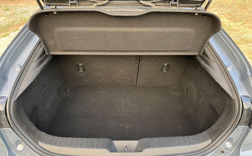 Με μήκος 4,46 μ. και μεταξόνιο 2,725 μ., το Mazda3 μπορεί να φιλοξενήσει 4 ενήλικες, από τους οποίους ο οδηγός και ο συνοδηγός δεν θα αντιμετωπίσουν κάποιο χωροταξικό πρόβλημα. Οι πίσω όμως επιβάτες έχουν περιορισμένο χώρο τόσο για τα γόνατα όσο και για τα κεφάλια τους, ενώ τα 358 λίτρα του χώρου αποσκευών είναι ελαφρώς κάτω από τον μέσο όρο της κατηγορίας. Ο χώρος αυτός διαθέτει ψηλό κατώφλι φόρτωσης, δεν φιλοξενεί ρεζέρβα, αλλά –ευτυχώς- έχει σχήμα που τον καθιστά πλήρως εκμεταλλεύσιμο και όταν αναδιπλωθεί η –διαιρούμενη- πλάτη του πίσω καθίσματος, γίνεται ένας ενιαίος – επίπεδος χώρος 1026 λίτρων.