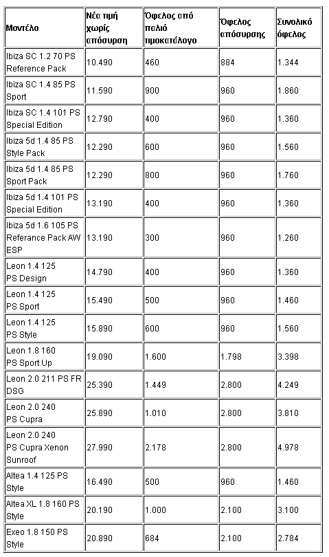 Mε το νέο αυτό πρόγραμμα, οι τιμές συγκεκριμένων αυτοκινήτων της Seat γίνονται ακόμα πιο δελαστικές, ενώ συνδυάζονται επίσης και με την κρατική επιδότηση σε περίπτωση απόσυρσης, μεγιστοποιώντας με τον τρόπο αυτό το όφελος για τον καταναλωτή, το οποίο μπορεί να φτάσει έως και τα 5.000 ευρώ.