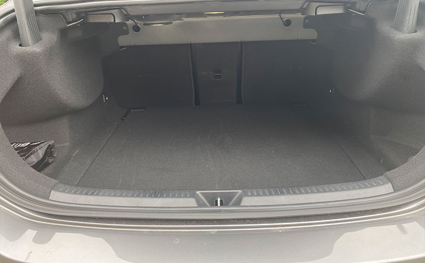 Κατά τα λοιπά, δεν εντοπίσαμε διαφορές, ενώ οι χώροι επαρκούν για τέσσερις επιβάτες (λίγο στριμωγμένοι σε ύψος οι πίσω) και ο κλασικός χώρος αποσκευών χωρά 405 λίτρα, αλλά δεν διαθέτει ρεζέρβα. Στο αυτοκίνητο της δοκιμής μας τα με αλκαντάρα επενδεδυμένα καθίσματα, το ανασχεδιασμένο (ντυμένο με δέρμα Nappa) πολυλειτουργικό τιμόνι και ο εσωτερικός φωτισμός με 7 διαφορετικές παραλλαγές χρωμάτων, έδινε επιπλέον πόντους πολυτέλειας, ενώ η εργονομία «πάσχει» μόνο στη θέση του επιλογέα ταχυτήτων που επιμένει να βρίσκεται εκεί όπου στα περισσότερα μοντέλα του κόσμου βρίσκεται ο μοχλός για τους καθαριστήρες.