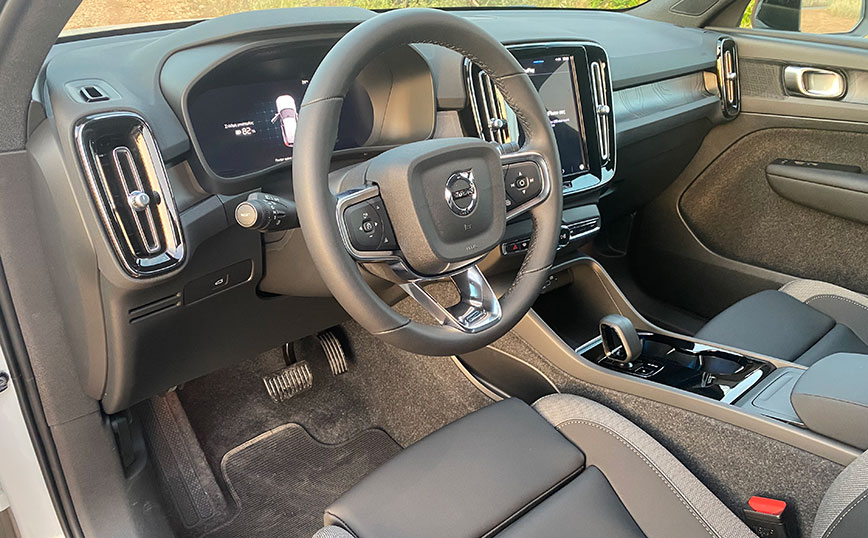 Όσον αφορά την κατανάλωση και κατά συνέπεια την αυτονομία, παρά το ότι η η Volvo ανακοινώνει μέση κατανάλωση 23,8 kWh/100 χλμ. (WLTP) με αυτονομία περί τα 418 χλμ.(με ανάκτηση ενέργειας), εμείς καταφέραμε με ήπιους ρυθμούς μέση κατανάλωση 20,5 kWh/100 χλμ. και αυτονομία κάτι περισσότερο από 350 χιλιόμετρα, ενώ αν η κίνηση είναι μόνο μέσα στην πόλη θα αυξηθεί σίγουρα καθώς η κατανάλωση ενέργειας μπορεί να μειωθεί έωα και τα 18kWh/100 χλμ.