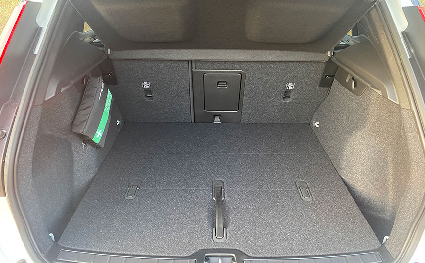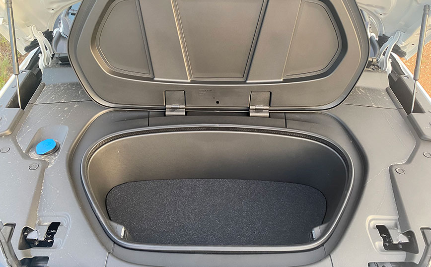 Το με διαστάσεις 4,43 Χ 1,86 Χ 1,65 μ. αμάξωμα δεν δείχνει ιδιαίτερα αεροδυναμικό, αλλά εξασφαλίζει ένα άνετο εσωτερικό που εύκολα μπορεί να φιλοξενήσει πέντε ενήλικες επιβάτες. Ο χώρος αποσκευών φτάνει τα 419 λίτρα, διαθέτει πλήρως εκμεταλλεύσιμο σχήμα και επίπεδο κατώφλι φόρτωσης, ενώ η απουσία θερμικού κινητήρα επέτρεψε την δημιουργία αποθηκευτικού χώρου 31 λίτρων κάτω από το εμπρός καπό, όπου βρίσκονται το κιτ επισκευής ελαστικού και τα καλωδίων φόρτισης, αλλά – όπως είναι και αναμενόμενο – δεν υπάρχει ρεζέρβα. Επιπλέον στο ποιοτικό εσωτερικό υπάρχουν πολλοί λειτουργικοί χώροι αποθήκευσης μικροαντικειμένων, καθώς και θέση ασύρματης φόρτισης κινητών τηλεφώνων.
