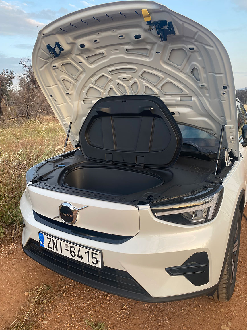 Τέλος, η ύπαρξη των δυο ηλεκτροκινητήρων, η ψηλή απόσταση από το έδαφος (γωνία προσέγγισης 20 μοίρες – γωνία διαφυγής 26,4 μοίρες) και η δυνατότητα επιλογής λειτουργίας Off Road, κάνουν το ηλεκτρικό XC40 της δοκιμής μας «όπλο» και για εκτός ασφαλτοδρόμων περιπλανήσεις, αρκεί ο οδηγός να έχει τα κατάλληλα ελαστικά και να θυμάται πως δεν υπάρχει ρεζέρβα. Στο odd road προφίλ (διαθέσιμο μόνο έως τα 40χλμ/ώρα) το σύστημα προσαρμόζει την ταχύτητα περιστροφής του κάθε τροχού ούτως ώστε να επιτυγχάνεται η μέγιστη πρόσφυση σε γλιστερές διαδρομές, απότομες κατηφόρες, δύσκολα περάσματα, κ.λπ.