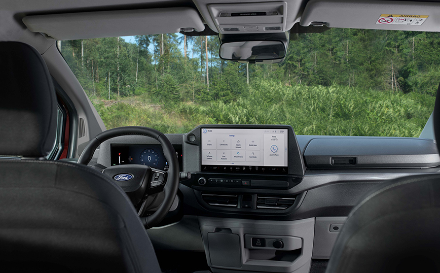 Το κομψό cockpit διαθέτει ένα πλήρως ψηφιακό σύμπλεγμα και μια μεγάλη οθόνη αφής 13 ιντσών. Η εύρεση ενός προορισμού, η ψυχαγωγία και η επικοινωνία είναι απλή υπόθεση με το πιο πρόσοφατο λογισμικό SYNC 4. Οι συνδεδεμένες λειτουργίες πλοήγησης, ήχου και επικοινωνίας του συστήματος μπορούν να ελέγχονται μέσω της οθόνης αφής ή μέσω φωνητικών εντολών, ενώ η ασύρματη ενσωμάτωση των Android Auto και Apple Carplay είναι στάνταρ.