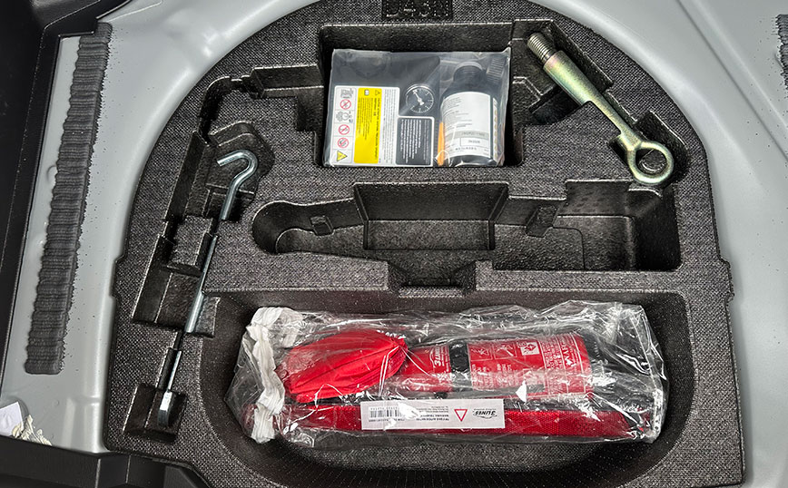 Αυτό που λείπει είναι η ρεζέρβα και αυτό δεν είναι προς όφελος του χώρου αποσκευών, καθώς στη θέση της βρίσκεται ένα πλαστικό που στερεώνει το κιτ επισκευής ελαστικού που δυστυχώς στις περισσότερες των περιπτώσεων δεν μπορεί να θεραπεύσει το ξεφούσκωτο (συνήθως από κόψιμο στο πλάι) ελαστικό.
