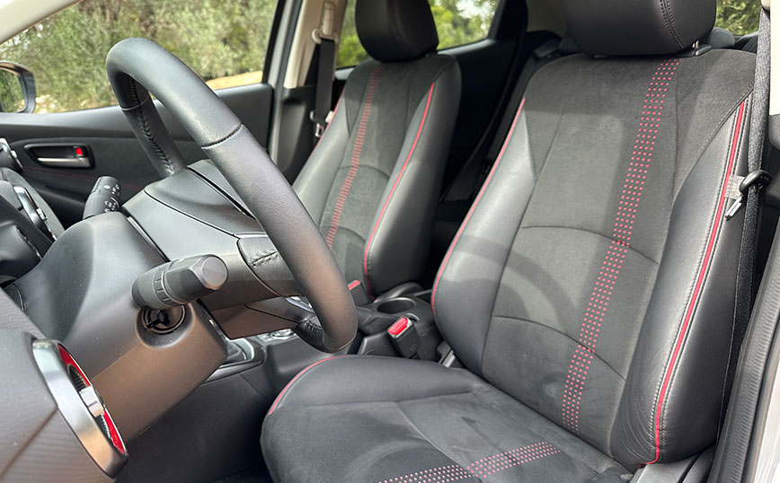 Το ακριβές – γρήγορο τιμόνι και τα δυνατά φρένα ενισχύουν το αίσθημα ασφάλειας και κάνουν το ιαπωνικό σούπερ μίνι ευχάριστο στην οδήγηση.