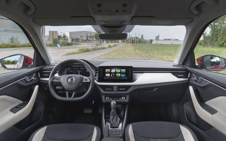Το εσωτερικό, προϊόν σχεδίασης του Δημήτρη Δαρκούδη, μοιάζει πολύ με αυτό του Scala (το είχαμε παρουσιάσει πριν λίγες εβδομάδες), αλλά η ποιότητα και η υφή των υλικών, σε συνδυασμό με την άριστη συναρμολόγηση, δίνει εικόνα πολύ ακριβότερης κατασκευής, ενώ η ευχάριστη αίσθηση που αποπνέει, κάνει την μετακίνηση με το Kamiq, μια ευχάριστη διαδικασία ακόμα και σε συνθήκες μποτιλιαρίσματος.