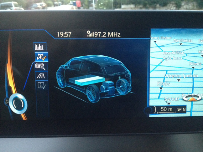 Πάντως, με βάση και τις ενδείξεις στον υπολογιστή ταξιδιού της κατανάλωσης ηλεκτρικής ενέργειας, η μέση μας κατανάλωση ήταν περί τις 14 kWh ανά 100 χιλιόμετρα, σαφώς μεγαλύτερη από την τυποποιημένη των 12,9 kWh/100 km, αλλά με το eco pro+ και αυτοσυγκράτηση μπορείς να επιτύχεις ακόμα και 12,5 KWh. Έτσι ή αλλιώς με όποια μέση κατανάλωση η οικονομία «καυσίμου» είναι απίστευτη, και εδώ είναι το ατού του i3, ενός αυτοκινήτου αποκλειστικά για την πόλη. Υπεύθυνο γι’ αυτό η αυτονομία των 160 θεωρητικών χιλιομέτρων που προσφέρει η τοποθετημένη κάτω από το πάτωμα μπαταρία λιθίου και η οποία χρειάζεται πολλές ώρες (6-8) σύνδεση σε μια απλή πρίζα για να δεις το πρωί στο ταμπλό του i3 ότι έχεις τη δυνατότητα να κινηθείς για περίπου 150-160 χιλιόμετρα με τις 22 KWh χωρητικότητας της μπαταρίας. Σε περίπτωση πάντως ταχυφόρτισης, ο απαιτούμενος χρόνος είναι μισή ώρα.