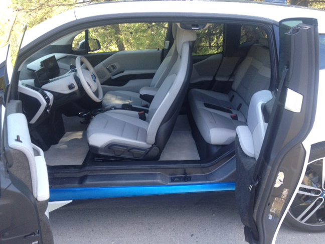 Mεσαία κολώνα δεν υπάρχει σε μια προσπάθεια να διευκολυνθεί η πρόσβαση πίσω, αλλά εκτός από τις πίσω πόρτες μπορεί να αξιοποιήσει κανείς και το «ρίξιμο» των μπροστινών καθισμάτων για περισσότερο άνετη είσοδο. Όσο για χώρους αποσκευών, ο μικρός αποθηκευτικός κάτω από το εμπρός καπό προορίζεται για το φορτιστή (που πρέπει να έχει κανείς πάντα μαζί του, καθώς μια φόρτιση της τάξης των 3 ωρών δίνει 40-50 χλμ. αυτονομίας) και το κιτ επισκευής ελαστικού, ενώ πίσω υπάρχουν διαθέσιμα 260 λτ. χωρητικότητας για τις όποιες αποσκευές.