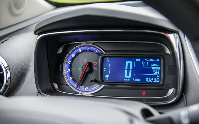 Ο πίνακας οργάνων, είναι ευχάριστη έκπληξη και ξεφεύγοντας από τα συνηθισμένα με αναλογικού τύπου στροφόμετρο και ψηφιακές ενδείξεις να πλαισιώνουν τους δείκτες ταχύτητας, βενζίνης, trip computer και πυξίδα.