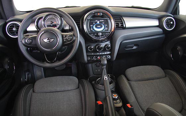 Στο εσωτερικό του αναγράφονται και οι ψηφιακές ενδείξεις του ηχοσυστήματος, των διαφόρων ρυθμίσεων και του συστήματος συνδεσιμότητας Mini Connected, το οποίο αντιδρά σε διακόπτες τοποθετημένους χαμηλά, δίπλα στο χειρόφρενο. Κερασάκι οι κλασικοί διακόπτες αεροπορικού τύπου, πλαισιώνουν το κόκκινο μπουτόν της εκκίνησης. Μικρές παραδοχές πρέπει να γίνουν στον τομέα της εργονομίας, αλλά «μπρος στα κάλλη, τι είναι λίγη προσαρμογή;».
