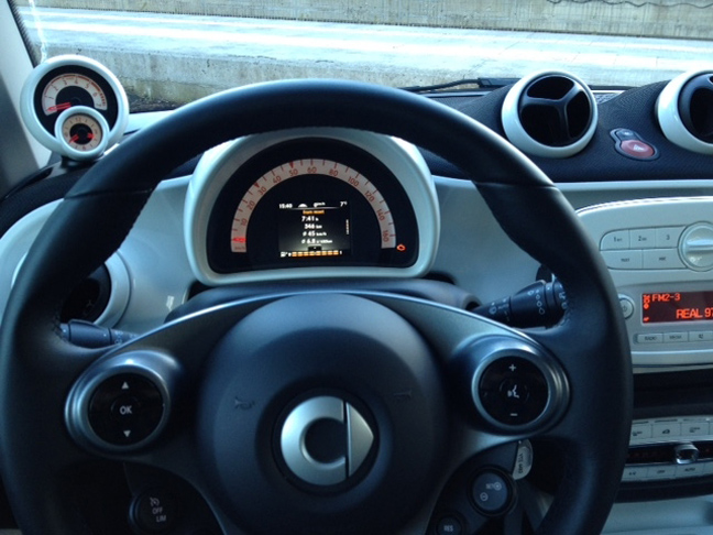 Στη θέση του οδηγού (αλλά και του επιβάτη) οι αλλαγές προς το καλύτερο είναι περισσότερο από αισθητές. Οι ώμοι δεν ακουμπούν, το ηλεκτρικό τιμόνι στρίβει σαν παιχνίδι κάνοντας το Smart να συμπεριφέρεται σαν …παπάκι, ενώ το 5άρι κιβώτιο ταχυτήτων θαρρείς ότι θέλει να «ξεπλύνει» τα όσα μειονεκτήματα του αυτόματου των προκατόχων. Ο λεβιές κουμπώνει εύκολα και η κλιμάκωση είναι αραιή για λόγους οικονομίας, αλλά η σβελτάδα δε λείπει σε κάθε περίσταση.