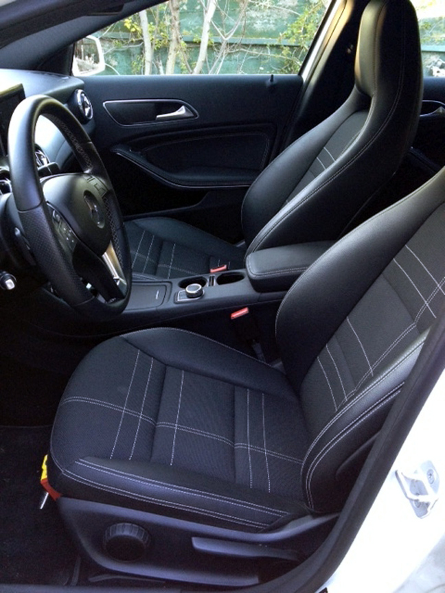 Tο εσωτερικό παραμένει τυπικά …A-Class με όμορφη σχεδίαση, ξεχωριστά όργανα, σπορ 3άκτινο τιμόνι, καθώς και όμορφα με υφασμάτινη επένδυση καλή στήριξη, άνετα καθίσματα. Τα υλικά σαφώς άνω του μέσου όρου, ενώ η συναρμογή (φινίρισμα) δείχνει κορυφαία.