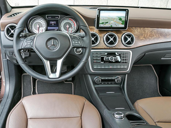 Σε κάθε περίπτωση πάντως η GLA που δοκιμάσαμε (λευκή, σε συνδυασμό με μαύρα πλαστικά και ασημί λεπτομέρειες), εντυπωσιάζει χωρίς να δείχνει τον όγκο της και οι απευθείας αντίπαλοι που είναι η ΒΜW X1 και το Audi Q3, έχουν να αντιμετωπίσουν ένα φρέσκο και τουλάχιστον ισάξιο σε δυνατότητες αντίπαλο. Δυνατό της σημείο εμφανισιακά, η υπερυψωμένη ουρά με τη διπλή εξάτμιση, ενώ από την ίδια γωνία διαπιστώνεις τα χαρακτηριστικά του κινητήρα (220 CDI) και την επιβεβαίωση τετρακίνησης (4matic).