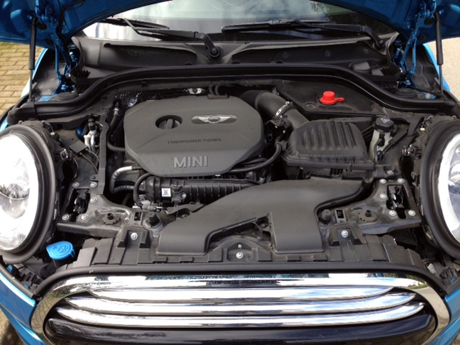Κινητήρια δύναμη του Mini της δοκιμής μας ο 3κύλινδρος 1.500άρης Twin Power Turbo, με 136 ίππους και 23,4 χγρμ. ροπής. Ο συνδυασμός τούρμπο, άμεσου ψεκασμού και ηλεκτρονικού ελέγχου των βαλβίδων αποδίδει ιδανικά, ούτως ώστε λίγο πάνω από 1.000 σ.α.λ. ο κινητήρας αρχίζει να τραβά και συνεχίζει απολύτως γραμμικά μέχρι τον κόφτη στις 6.200 σ.α.λ..