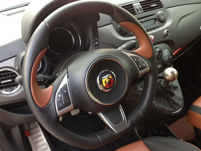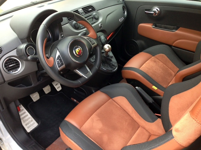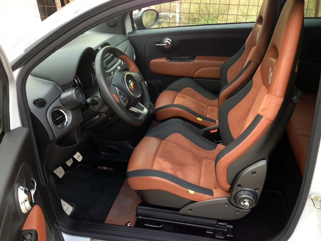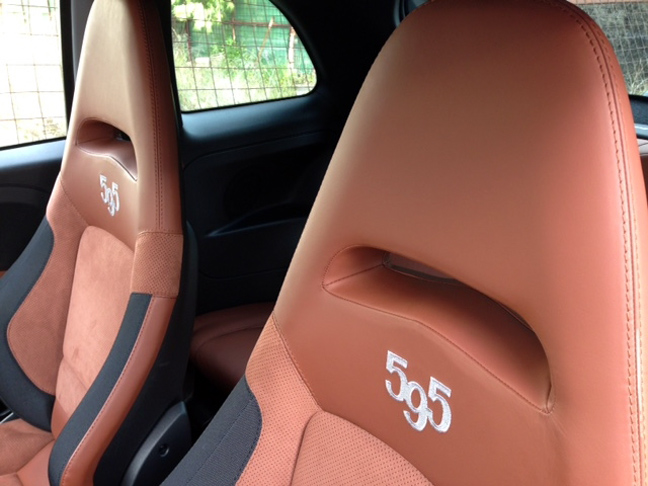 Πέραν αυτού το τιμόνι που διαθέτει διακόπτες δευτερευουσών λειτουργιών, η μεταλλική σφαίρα στην κορυφή του επιλογέα ταχυτήτων και το όργανο για την πίεση του τούρμπο, ενισχύουν τις σπορ προδιαγραφές του 595 Competizione. Κατά τα λοιπά, ξεχωρίζει το σουέτ δέρμα που επενδύει τα καθίσματα, η σωστή πλευρική στήριξη των εμπρός καθισμάτων και ο ικανοποιητικός (τηρουμένων των αναλογιών) χώρος για τους πίσω επιβάτες που ιδανικά θα πρέπει να είναι έως παιδιά γυμνασίου, τόσο όσον αφορά τον χώρο, όσο και τις δυνατότητες πρόσβασης. Για να μην ξεχνιόμαστε υπάρχει και χώρος αποσκευών, τόσος όσο και στα απλά 500αράκια, επαρκέστατος για τους κατά τη γνώμη μας εν δυνάμει αγοραστές του Competizione.