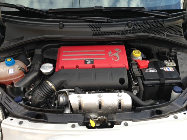 Κάτω από το μικρό καπό καταφέρνει να χωρά ο υπερτροφοδοτούμενος 1,4 T-Jet της FIAT που εδώ αποδίδει 160 ίππους (αντί 135 του απλού Abarth) με ροπή του ανέρχεται στα 23,4 χγρμ/3.000 σ.α.λ. Οι αριθμοί αυτοί σε συνδυασμό με τα μόλις 1.035 κιλά του αμαξώματος κάνουν τις επιδόσεις τουλάχιστον συναρπαστικές, καθώς τα 0-100 έρχονται σε 7,4’’., ενώ η τελική ταχύτητα φτάνει τα 210 χλμ./ώρα. Κάπου εδώ σου έρχεται στο νου αυτό που είχε πει πριν σχεδόν μισό αιώνα η Πασκάλ Πετί, μια μικρών διαστάσεων ντίβα του σινεμά: Τα ακριβά αρώματα μπαίνουν σε μικρό μπουκάλι, και ξεχνάς τις «ασθενικές» ντίζελ και 2κύλινδρες εκδόσεις του σύγχρονου 500, συνειδητοποιώντας πόσο αλλάξαν οι καιροί από το προ μισό αιώνα ορίτζιναλ 595 με τους 32 ίππους, έως τα σημερινά 160 άλογα!