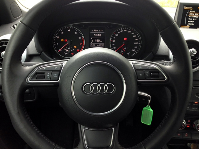 Το Α1 Sportback των 140 ίππων γίνεται αντιληπτό εξωτερικά κυρίως από τη διχρωμία του αμαξώματος και φυσικά όταν καθίσεις στην πολύ καλή θέση οδήγησης.