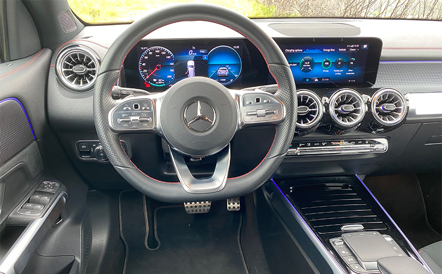 Το μεγάλο ατού της EQB όμως είναι η διαχείριση της ενέργειας που αυξάνει σημαντικά την αυτονομία, περιορίζοντας την κατανάλωση σε τιμές κάτω και από αυτές που υπόσχεται ο κατασκευαστής. Με προφίλ eco και το κιβώτιο στη θέση D- οι δυνατότητες επιτάχυνσης περιορίζονται αισθητά, αλλά στο άφημα του γκαζιού το βαρύ όχημα σχεδόν φρενάρει (προσομοιάζοντας τη λειτουργία one pedal) ανακτώντας ενέργεια. Ταυτόχρονα, η κατανάλωση ενέργειας πέφτει στις 13 με 14 KWh ανά 100 χιλιόμετρα, τιμή απίστευτη με βάση τις μέχρι τώρα εμπειρίες μας από αμιγώς ηλεκτροκίνητα οχήματα.