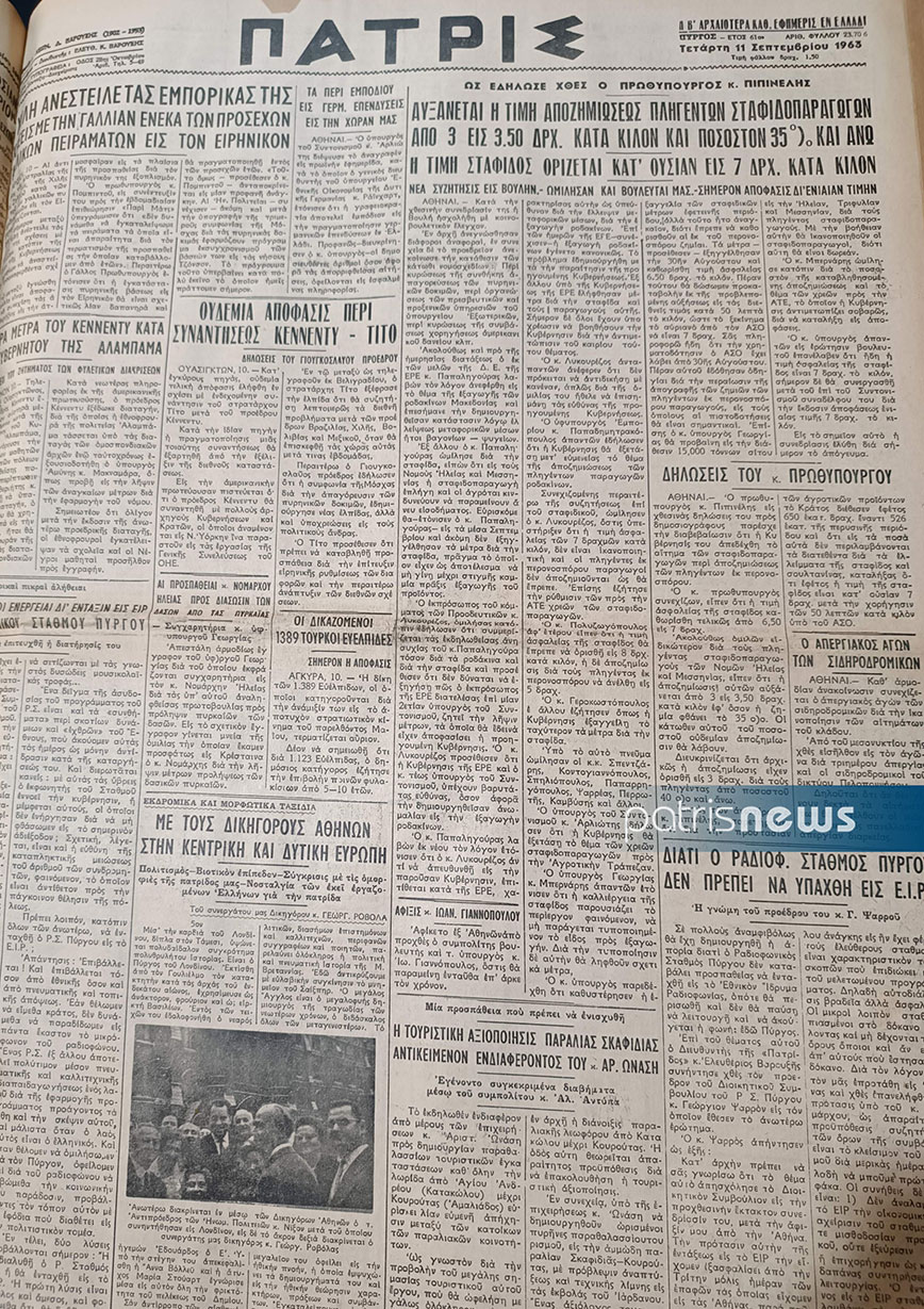 Μια ιστορία που λίγοι γνωρίζουν, σχετικά με τον Αριστοτέλη Ωνάση και τον νομό Ηλείας, έρχεται στο φως χάρη στο αρχείο της εφημερίδας «Πατρίς». Πιο συγκεκριμένα, δημοσίευμα από την έκδοση της 14ης Σεπτεμβρίου του 1964, αναφέρει πως ο Έλληνας κροίσος, είχε δείξει μεγάλο ενδιαφέρον για την Ηλεία, εκδηλώνοντας την επιθυμία να δημιουργήσει παραθαλάσσιες τουριστικές εγκαταστάσεις σε όλη ττηην λωρίδα από τον Άγιο Ανδρέα μέχρι την Κουρούτα.