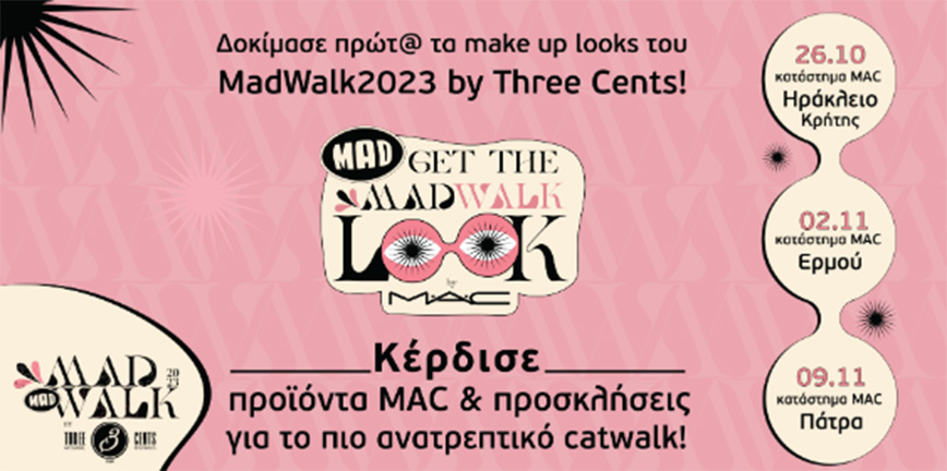 Και όχι μόνο! Όσοι και όσες φωτογραφηθούν με το look που επιλέξουν στο publicity banner που θα βρίσκεται στο κατάστημα και ανεβάσουν story τη φωτογραφία τους στο Instagram κάνοντας mention @mad_tv & @maccosmeticsgreece, θα μπουν στην κλήρωση για να κερδίσουν προϊόντα MAC αλλά και προσκλήσεις για το MadWalk 2023 by Three Cents.