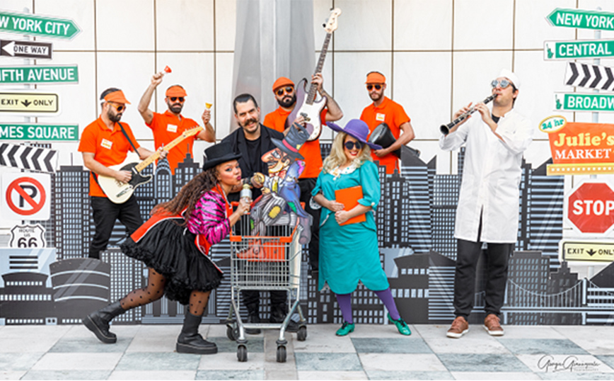 Τον Καραγκιόζη συντροφεύουν στο ταξίδι του στην αμερικανική μεγαλούπολη οι μουσικοί: Δημήτρης Σχίζας (κιθάρα), Γιώργος Κουρέλης (πλήκτρα), Γιώργος Πουλιάσης (τύμπανα), Μάρκο Γκρινόβερ (μπάσο), Χρήστος Παπαδόπουλος (κλαρίνο).