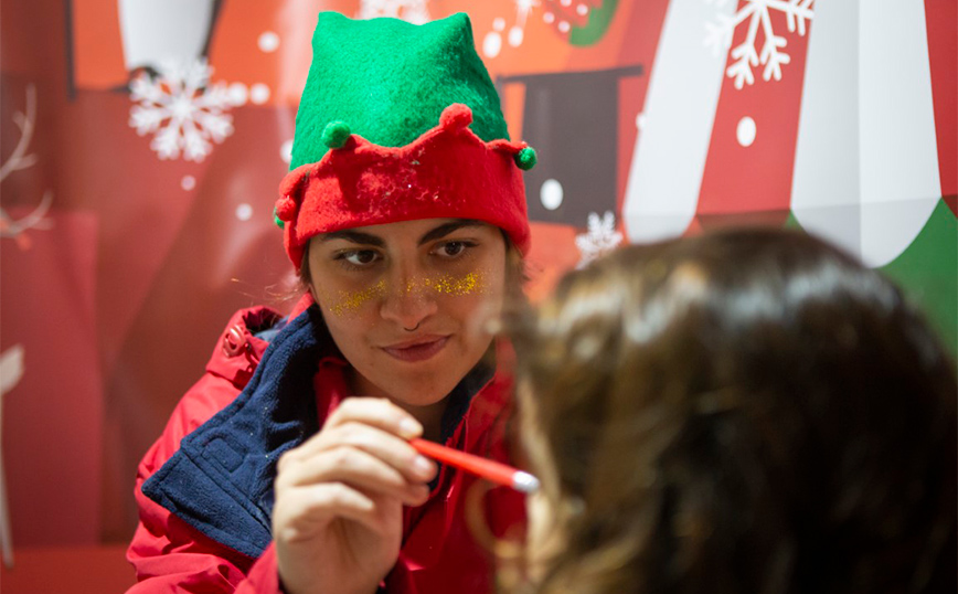 Οι παραμυθένιοι γίγαντες, οι ξυλοπόδαροι, φορούν τα γιορτινά τους και έρχονται στα «χριστουγεννιάτικα χωριά» για να διασκεδάσουν τα παιδιά, ενώ αγαπημένες μασκότ των Χριστουγέννων, όπως το Ξωτικό, ο Νάνος, ο Τάρανδος και ο Χιονάνθρωπος ζωντανεύουν στις γειτονιές της πόλης τους αγαπημένους ήρωες των παιδιών.