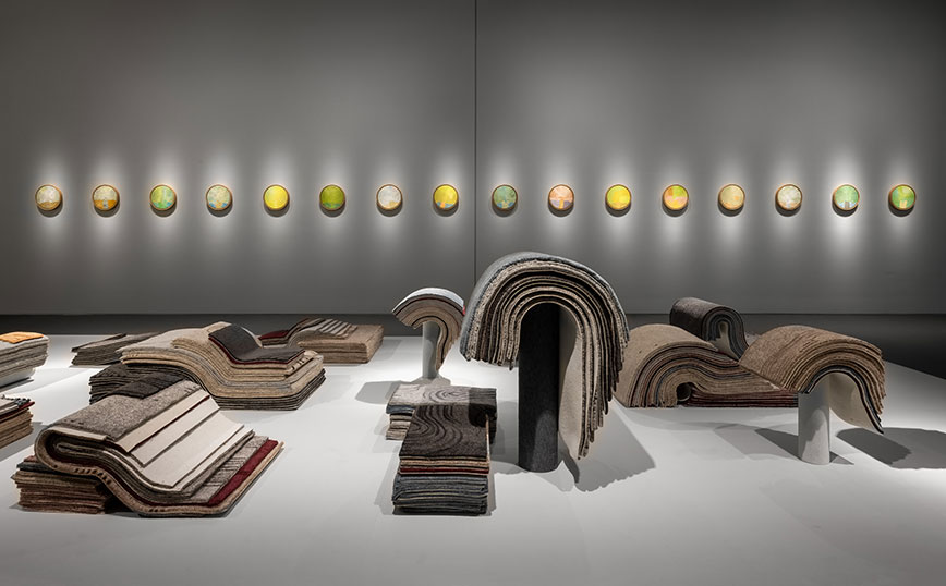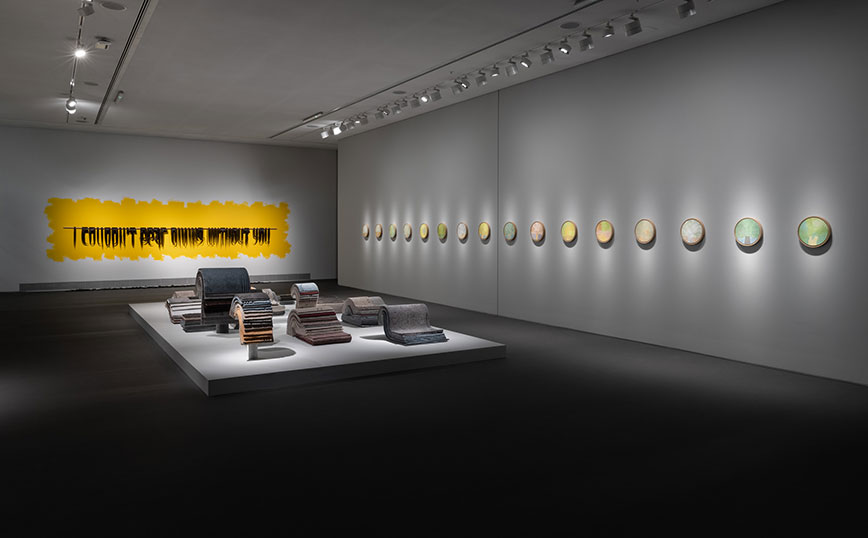 Οι 12 από αυτές προέρχονται από τη Δωρεά της Συλλογής Δ. Δασκαλόπουλου και οι 13 από την υπάρχουσα συλλογή του ΕΜΣΤ, ενώ επτά από τα έργα είναι νέα αποκτήματα του Μουσείου. Η παρουσίαση περιλαμβάνει επίσης ένα σημαντικό, μουσειακό έργο της Etel Adnan (Λίβανος), το οποίο αποτελεί νέο μακροχρόνιο δανεισμό στο Μουσείο, με την ευγενική παραχώρηση της Saradar Collection (Παρίσι/Βηρυτός).