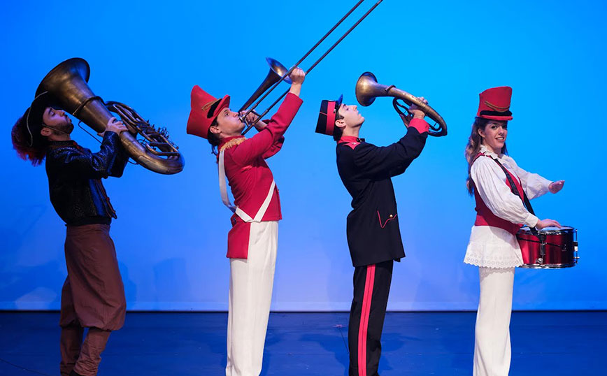 Η σκηνή του θεάτρου μετατρέπεται σε χριστουγεννιάτικο θεατρικό τοπίο. Κοστούμια εποχής, άμαξες, παλάτια, κούκλες μπαλαρίνες, στρατιώτες, τυμπανιστές, πουλιά ακροβάτες, μεταφέρουν τις καρδιές μας σε Χριστούγεννα που όλοι ονειρευόμαστε!