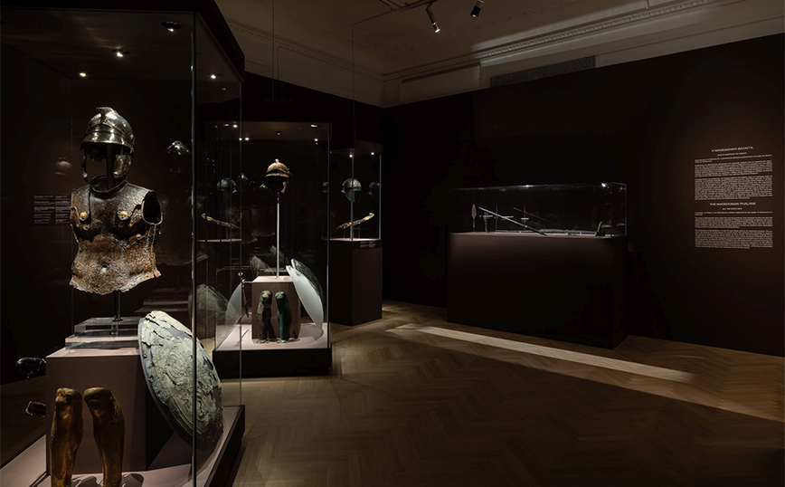 Μεταξύ των εκθεμάτων της έκθεσης ξεχωρίζουν το μοναδικό ταφικό σύνολο του πολεμιστή από την Ηγουμενίτσα με τον μοναδικό σιδερένιο θώρακα και το επαργυρωμένο κράνος, η εξαιρετικής αισθητικής και ιστορικής σημασίας μακεδονική ασπίδα με την επιγραφή Βασιλέως Αλεξάνδρου, προϊόν κατάσχεσης από λαθρανασκαφή, οι χρυσοί στατήρες του Φιλίππου, του Αλεξάνδρου και των Διαδόχων του, τα οστά των Ιερολοχιτών και των Μακεδόνων πεσόντων, ο μοναδικός τάφος της Τανάγρας, απτό σύμβολο της σημασίας της μάχης και στην περιοχή της Βοιωτίας.
