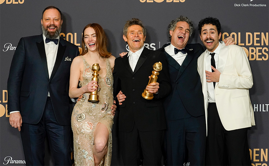 Έξαλλα πανηγύρισε ο Μαρκ Ράφαλο τη Χρυσή Σφαίρα Καλύτερης Κωμωδίας ή Μιούζικαλ που κέρδισε η ταινία «Poor Things» του Γιώργου Λάνθιμου στις Χρυσές Σφαίρες. Ο ηθοποιός καταγράφηκε να… χοροπηδάει με το βραβείο στα χέρια στη φωτογράφιση μετά την τελετή απονομής.