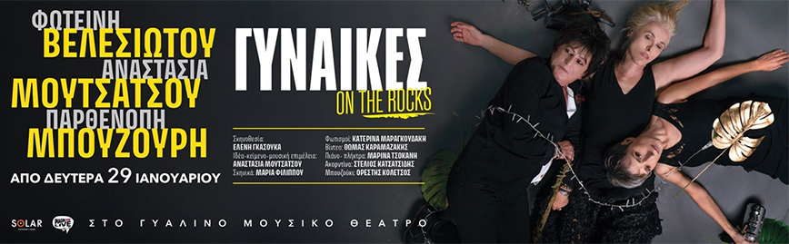 «Γυναίκες on the rocks», μια μουσικοθεατρική παράσταση, όπου ο λόγος αγκαλιάζει μαγικά τη μουσική και τα τραγούδια, απογειώνοντας το συναίσθημα, με στόχο την κάθαρση μέσω της εξομολόγησης.